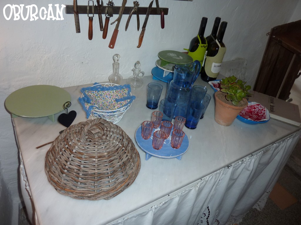 Dedim ya bir ev havası var, hem de çok kuvvetli. Tavan ahşap, duvarlar kireç. Dolaplar, raflar, tüm malzemeler eski.