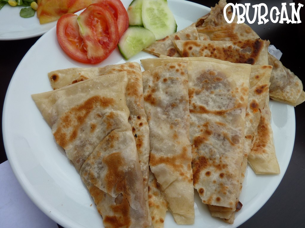 Kıymalı, peynirli, patatesli, patlıcanlı, ıspanaklı ve karışık gözleme çeşitleri var. Tercihimiz patlıcanlı. Elde açma gözleme hamuru incecik maşallah. İçinin patlıcanı az acılı ve lezzetli. Gözlemeyi çok beğendim.